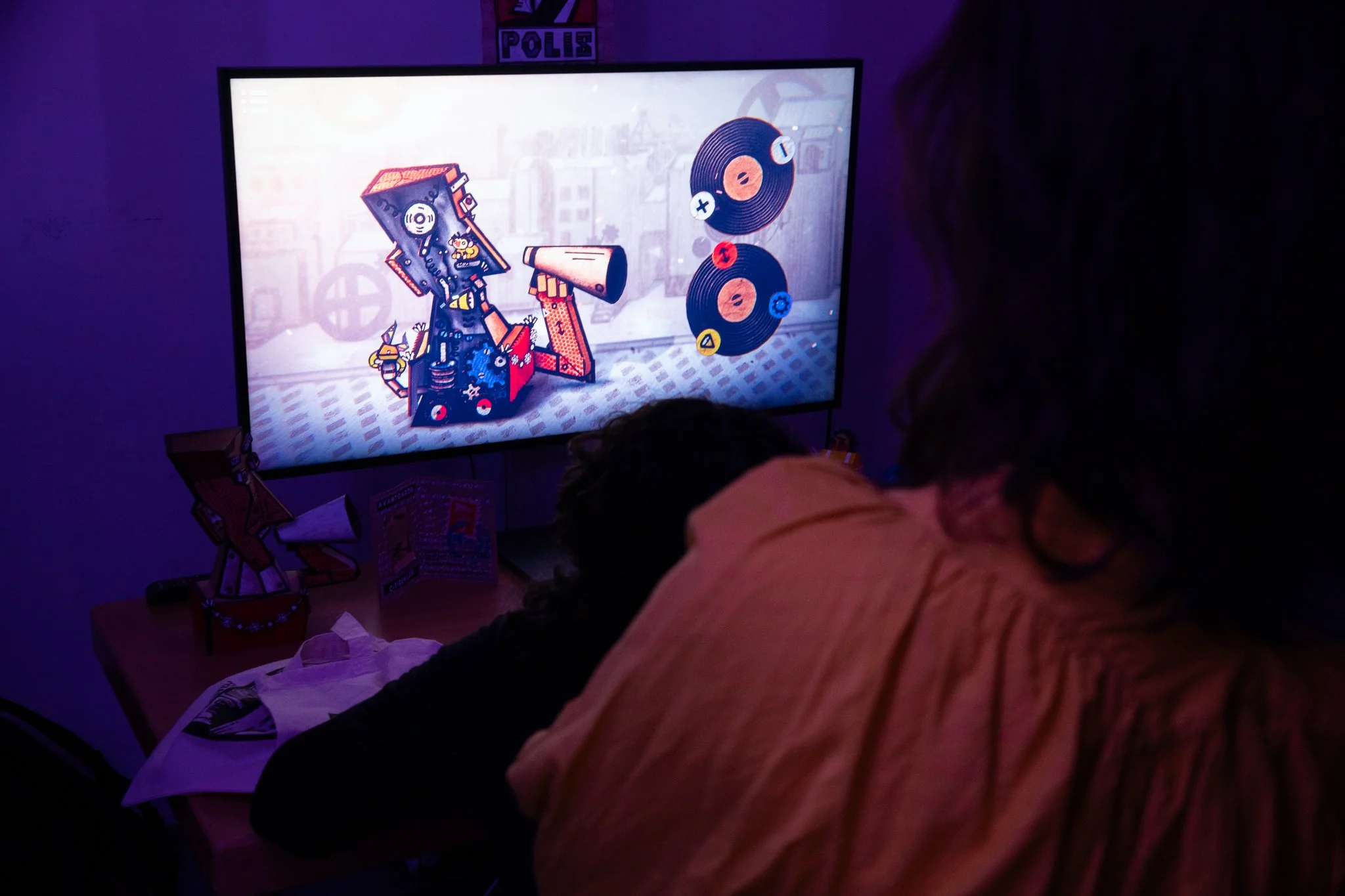 Metaphorically referring to the totalitarian model of society, Phonopolis is a city built of actual cardboard. Capturing the nostalgic charm of classic stop-motion films, every piece of any building, every character, and every frame of any smoke or flame is hand-painted on a piece of paper, then digitized for use in the game’s 3D world.